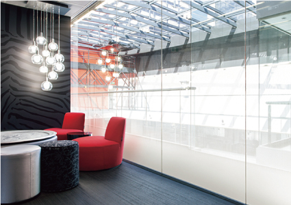 濃度が選べるガラスフィルムは会社の室内などで活躍します。 ガラスで囲われた会議室、周囲の目が気になりますよね。またガラス張りの部屋は光もよく通すので、解決するにはガラスフィルムが役立ちます。濃度を調整したながら見える部分だけ見せていく、そのようなご相談も是非お任せください。